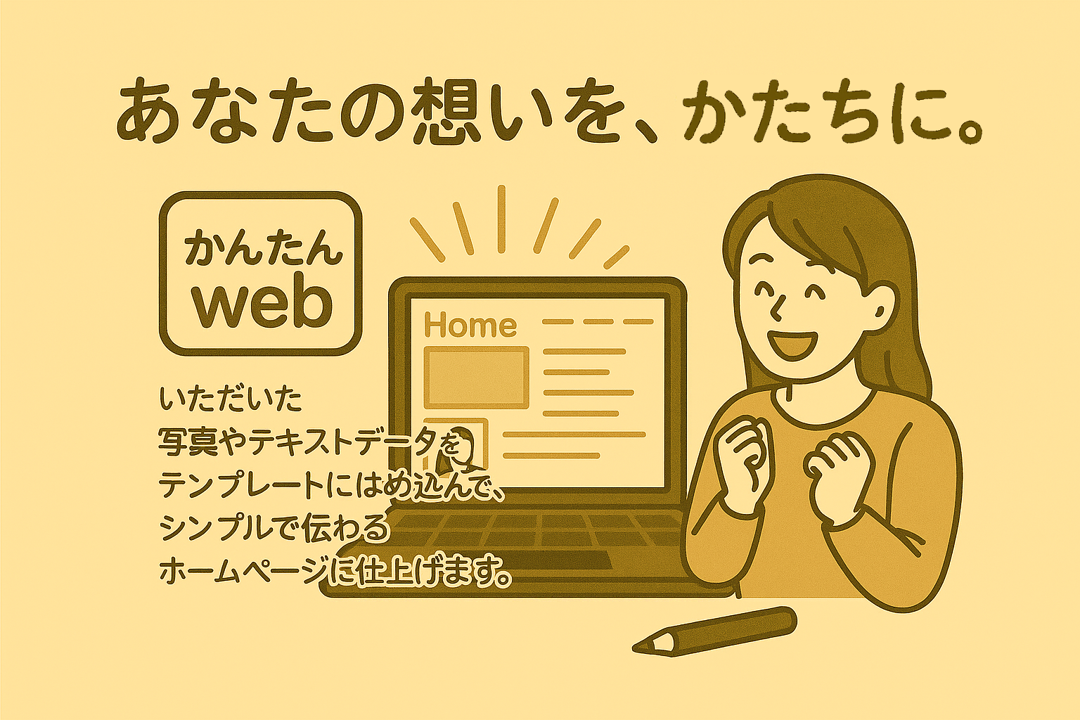 「かんたんweb」 いただいた写真やテキストデータをテンプレートにはめ込んでシンプルで伝わるホームページに仕上げます。